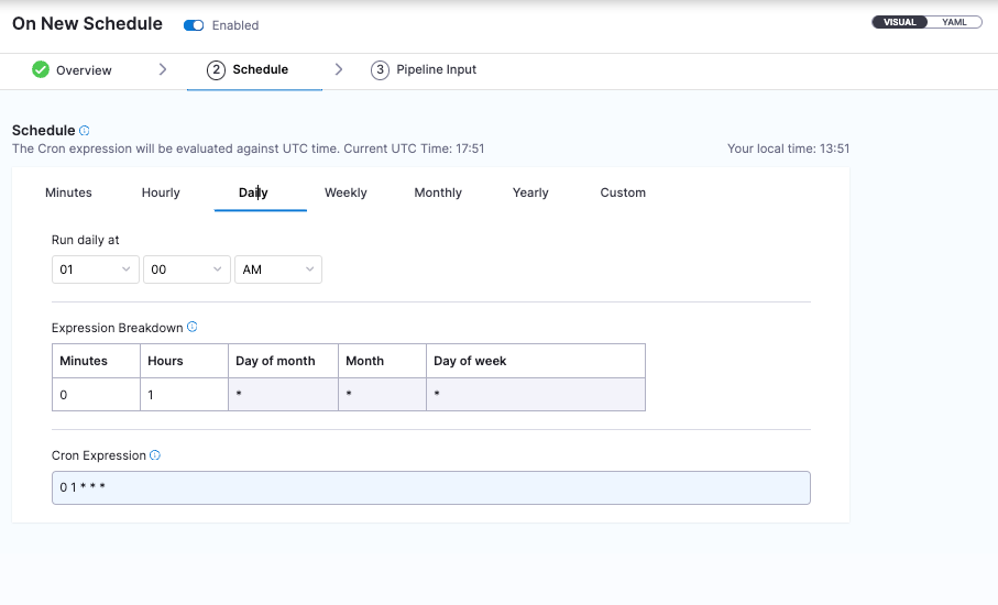 You can add a Cron trigger to run the pipeline on a frequency. This is useful for when new AWS accounts get added, we can automatically run the pipeline and pick create new connectors for them.