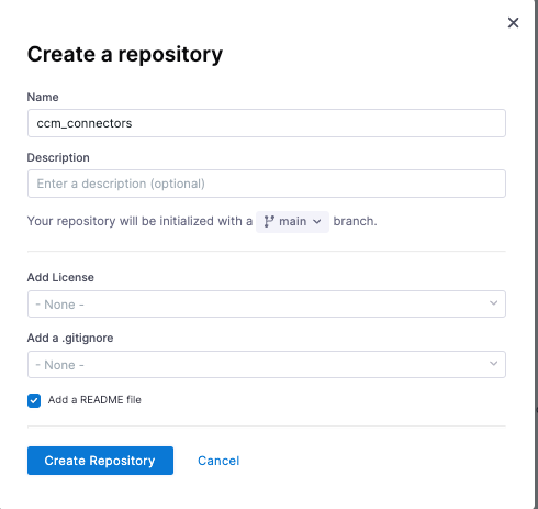 1. Go into your new project and create a new Code repository. This will hold the code for our CCM connectors.
