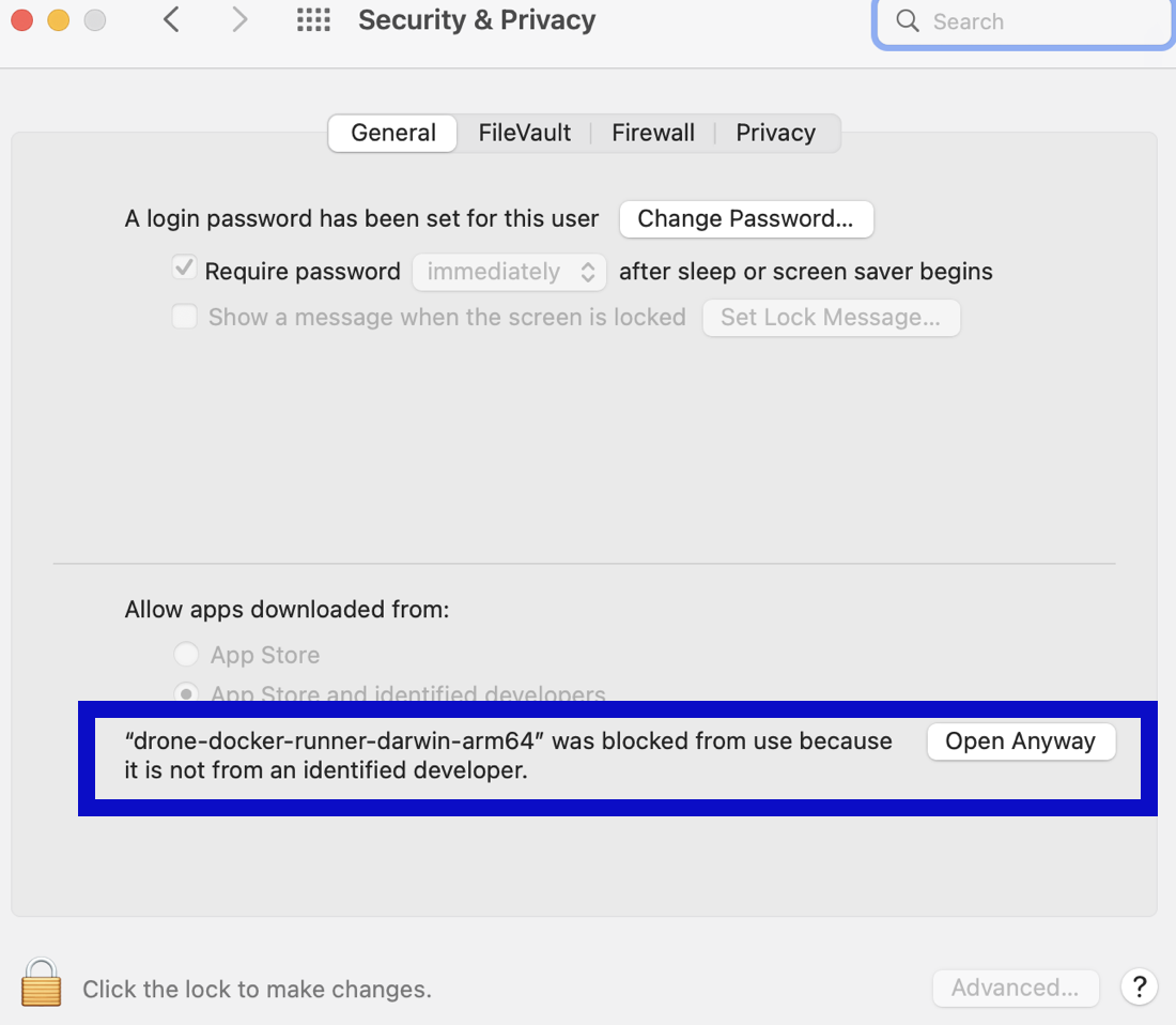 5. If macOS Gatekeeper stops the installation because it can't check for malicious software, you need to modify Security & Privacy settings to allow this app to run.