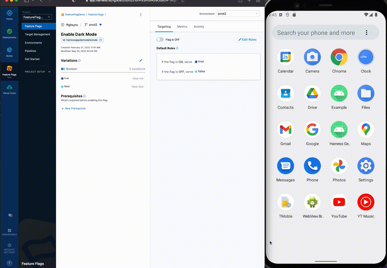 Here is a sample code for using Harness Feature Flag SDKs with the Android application. To learn more about using the sample Android application, go to the Android GitHub repository.