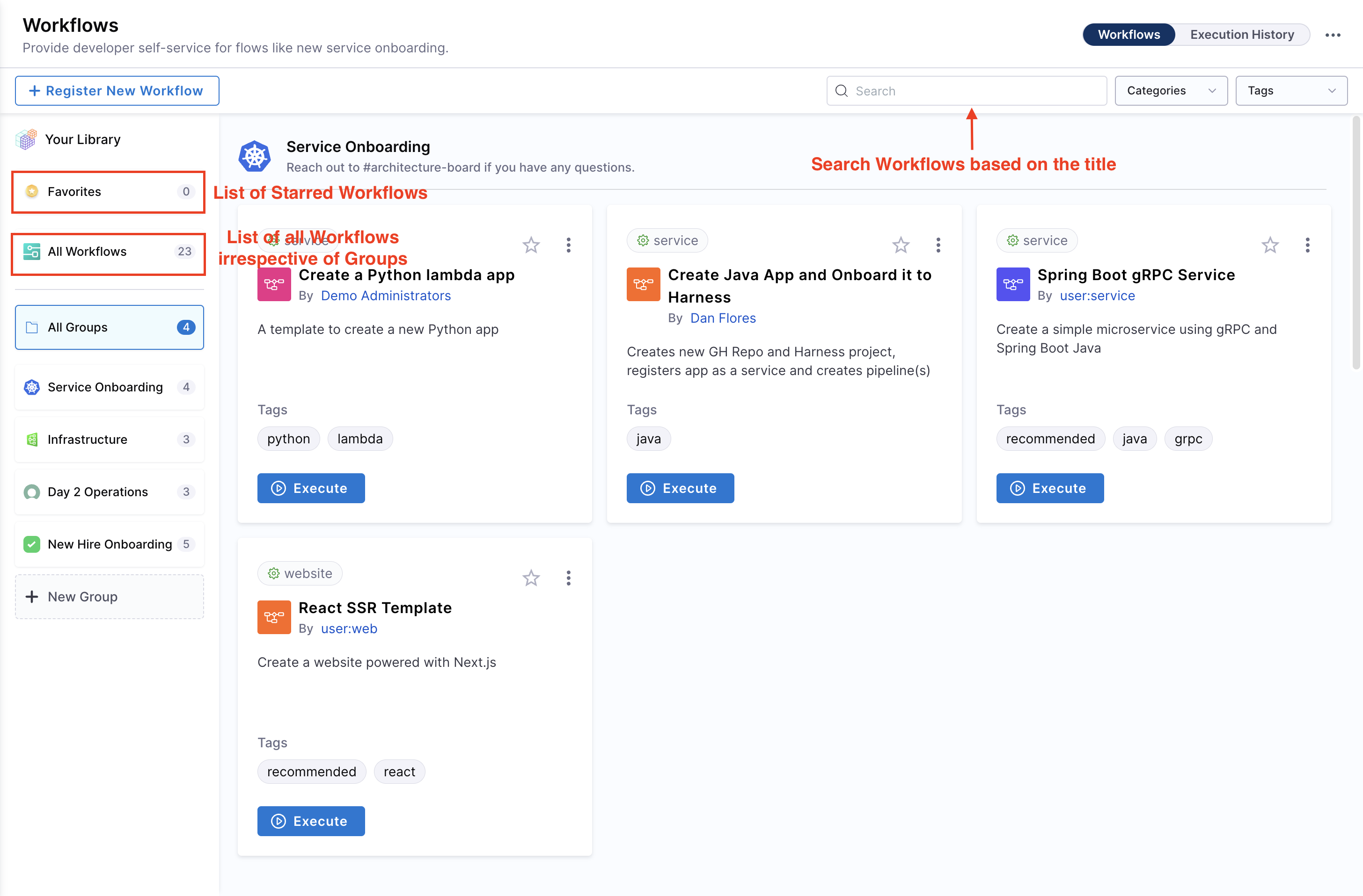 This will help you surface out the most useful Workflows for your developers, while rest of workflows will continue to live under "All Workflows" page.