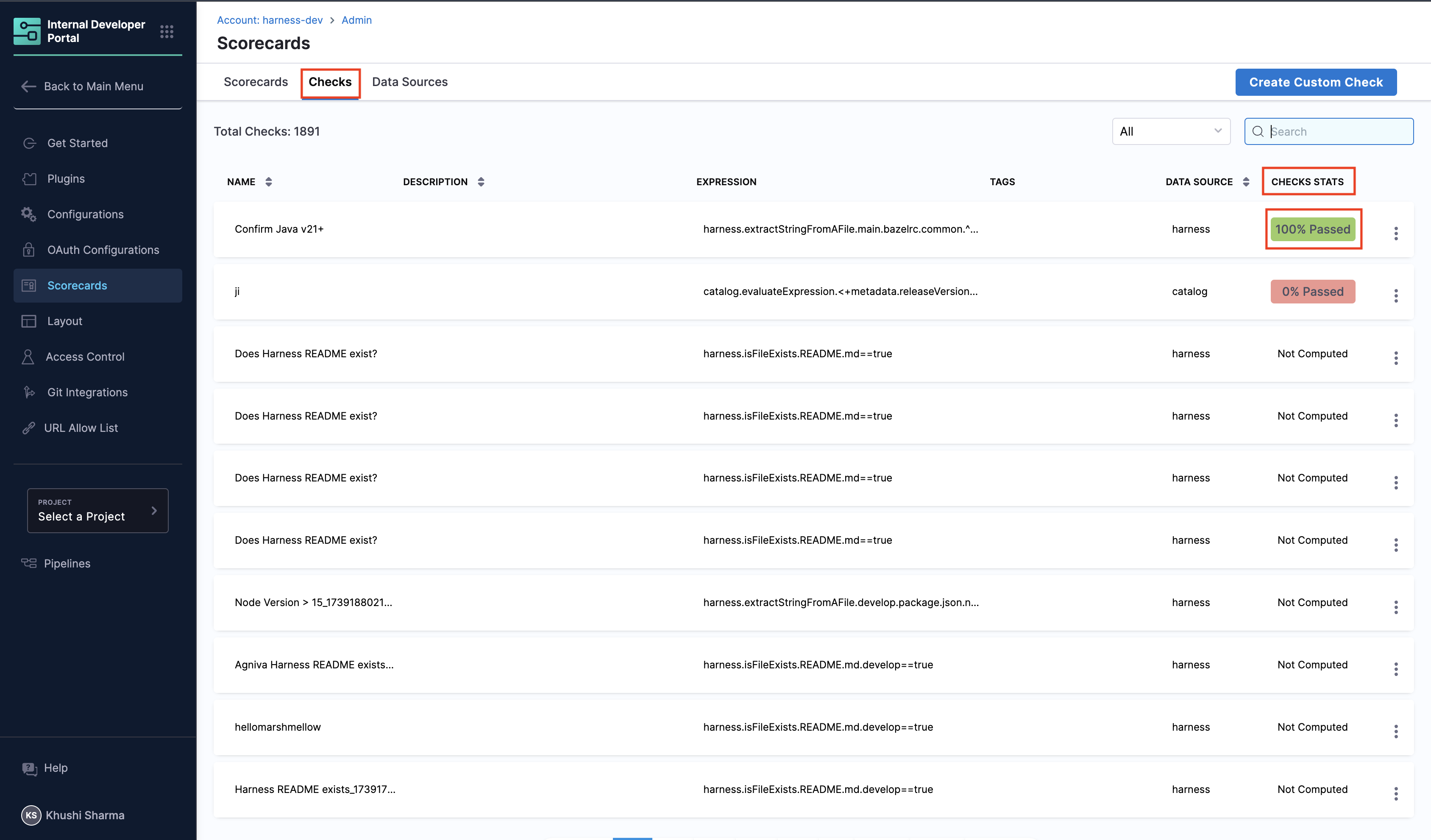 You can manually refresh a component's Scorecard evaluation from the Harness IDP UI, triggering an on-demand evaluation and updating the component's score in real time.