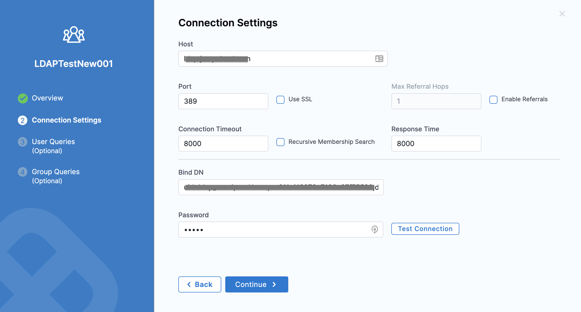 11. Click Test Connection. Once the connection is successful, click Continue.