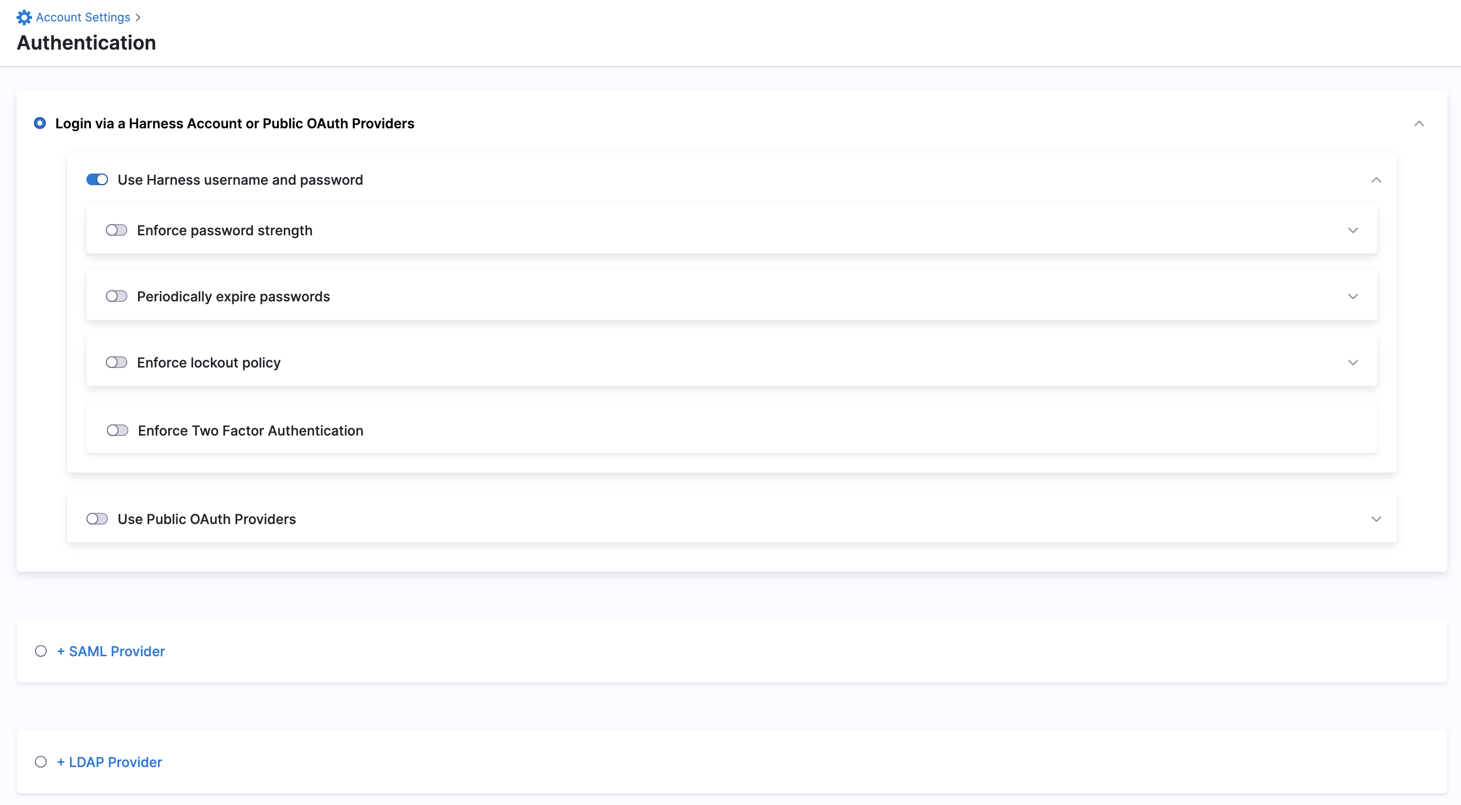 1. In your Harness account, click Account Settings, and then click Authentication.