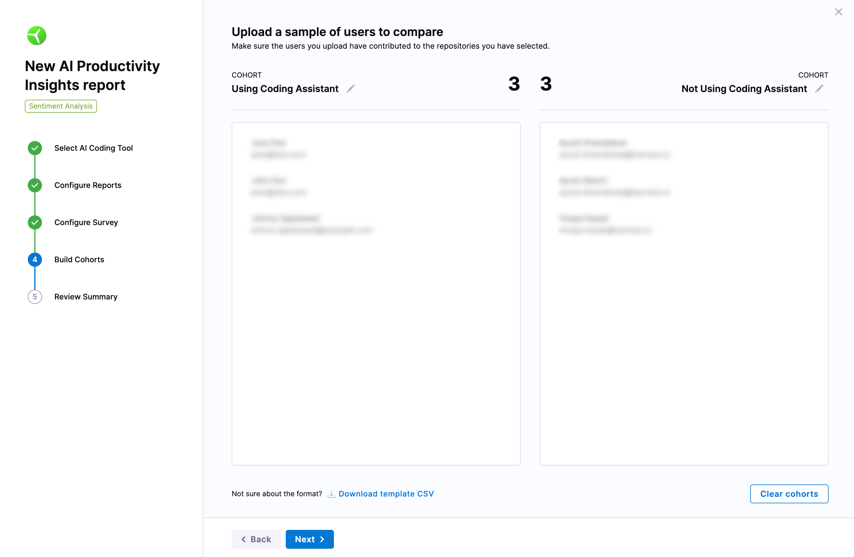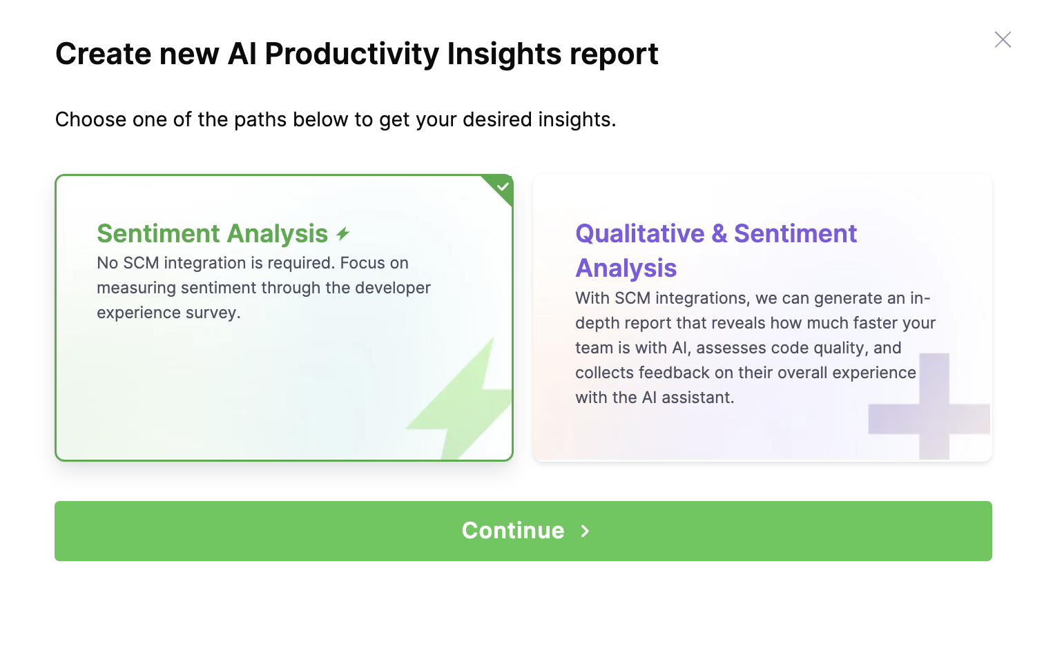 • Quick feedback loops: When you need to quickly assess how AI tools are impacting your developers' experience and performance.